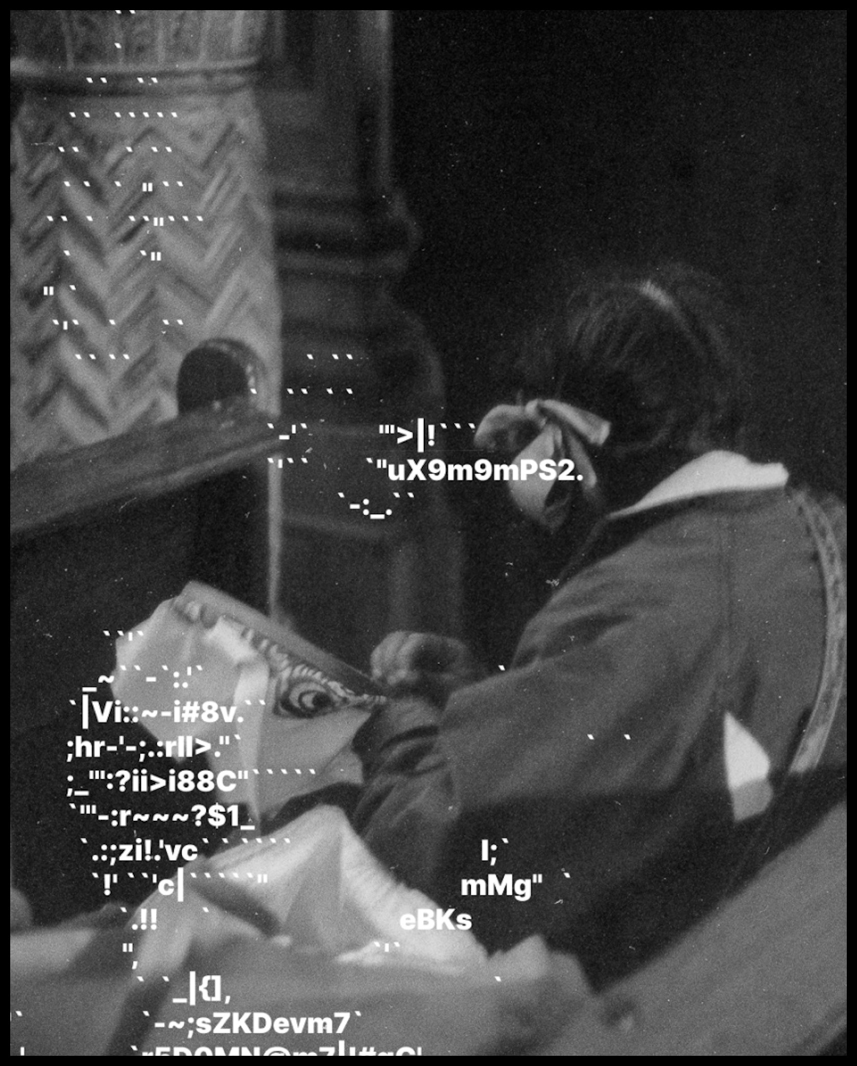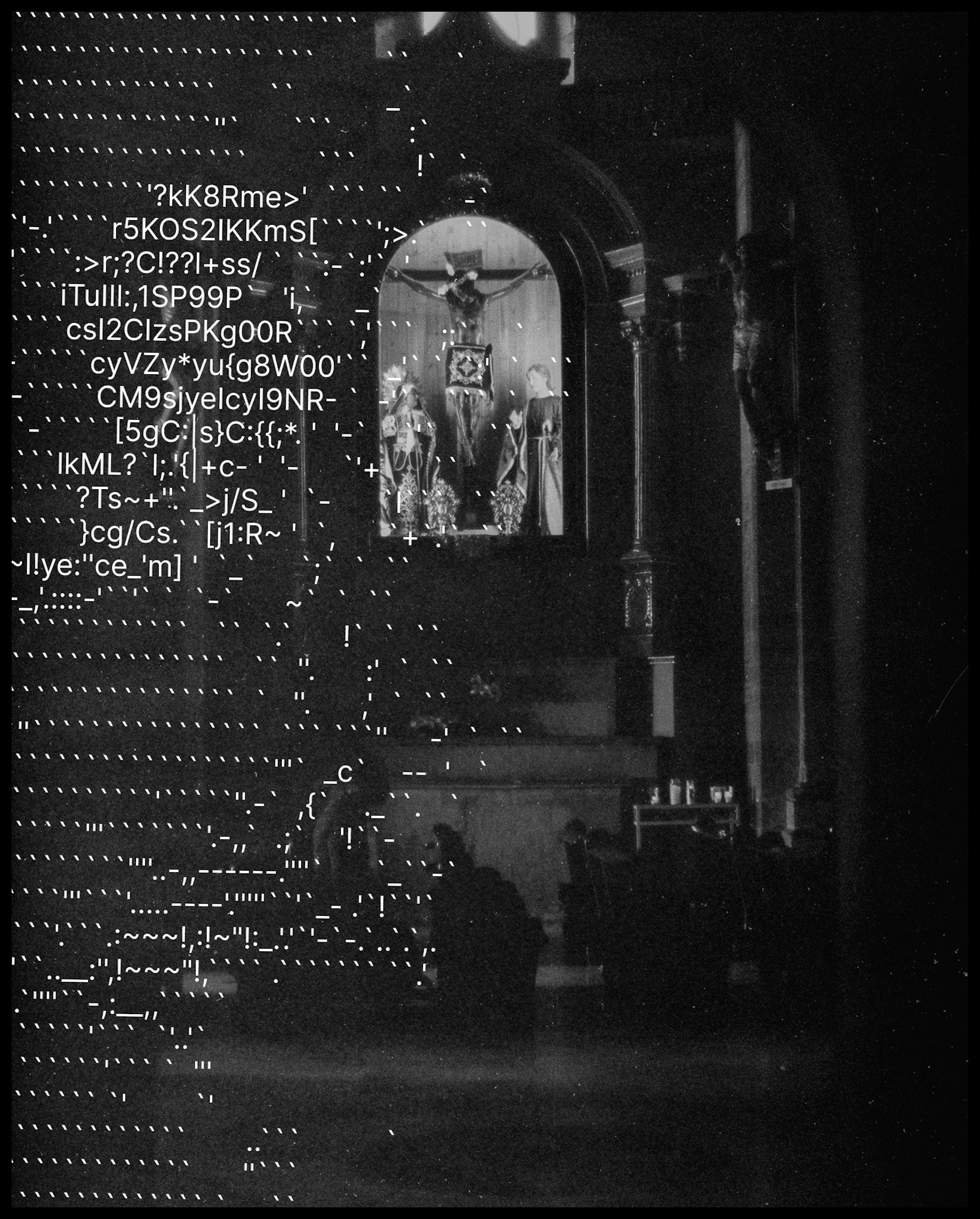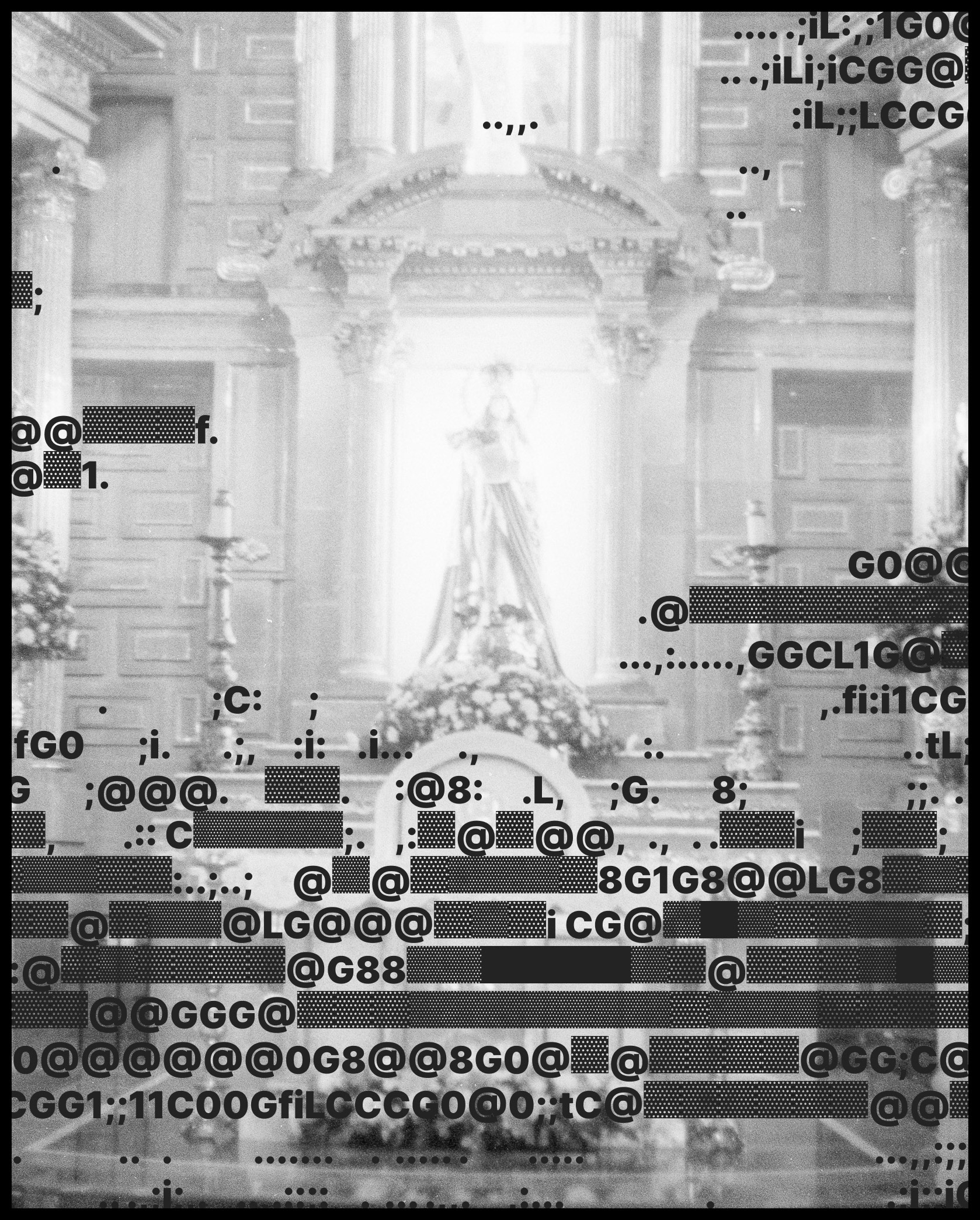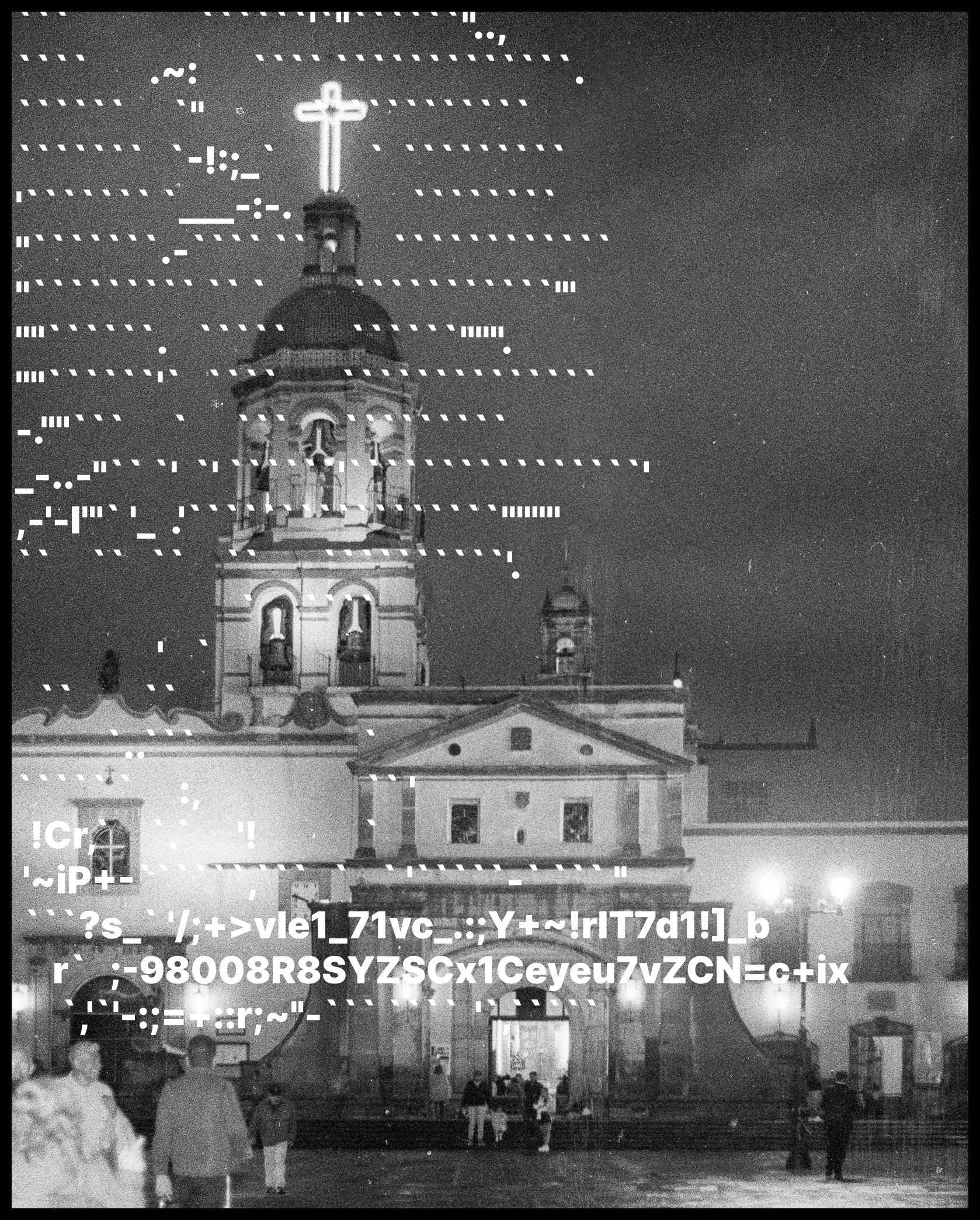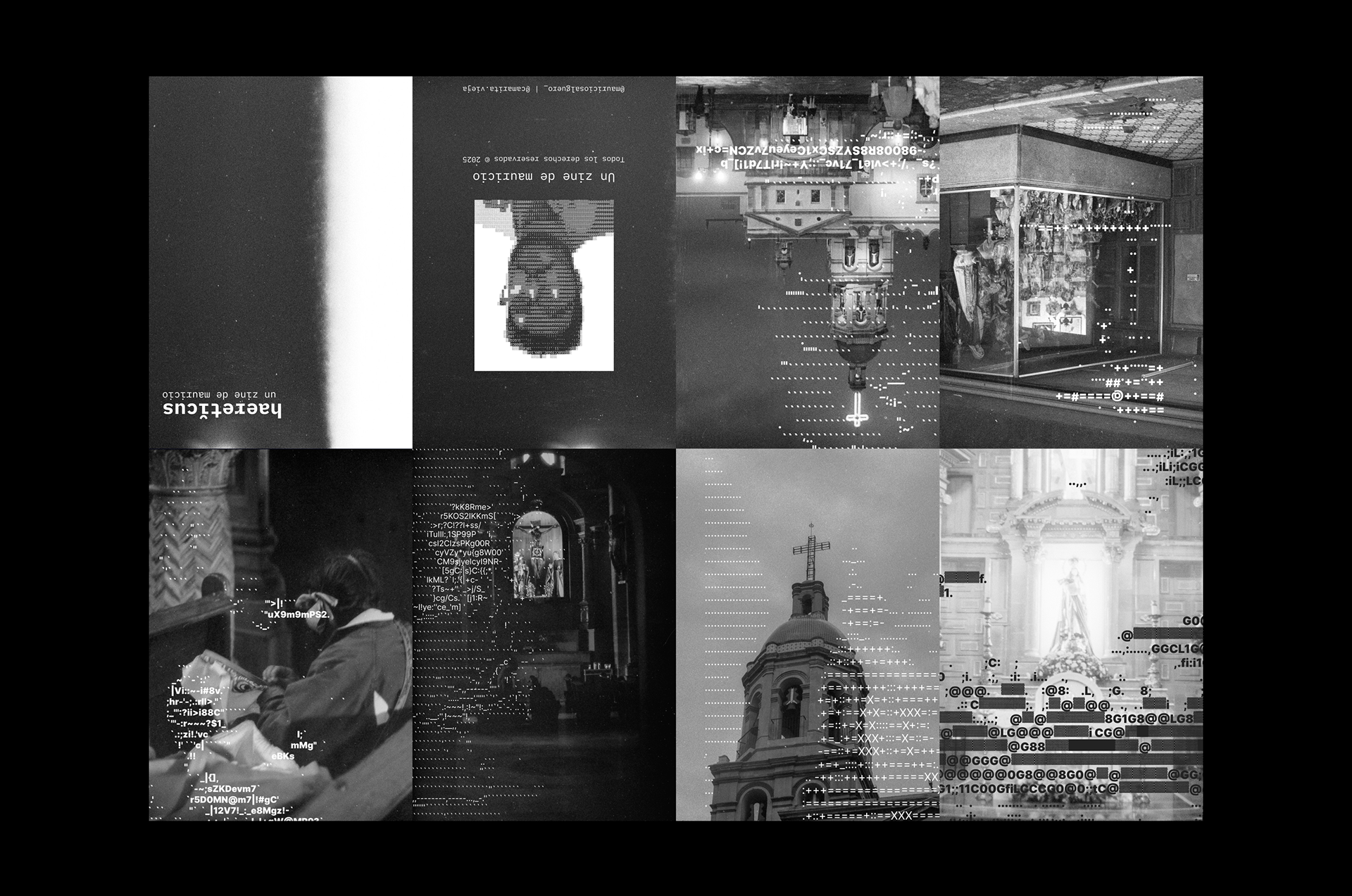 La serie presenta imágenes de carácter religioso intervenidas con estructuras propias del lenguaje computacional, estableciendo una tensión directa entre lo sagrado y lo técnico. El error, la materialidad del film y el grano conviven con signos asociados al control y al sistema, proponiendo una lectura herética de la imagen contemporánea. El zine funciona como archivo y objeto compartido, concebido para ser descargado, distribuido y reproducido libremente.